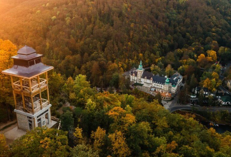 Gyermekkorunk örökzöld kirándulóhelye Lillafüred! Ki ne látott volna lélegzetelállító fotókat Magyarország legnagyobb esésű vízeséséről? A Hámori-tó partján álló neoreneszánsz kastélyról és Függőkertről? Az európai viszonylatban is egyedülálló Anna mésztufa-barlangról? Magyarország legszebb vonalvezetésű erdei kisvonatáról? Kihagyhatatlan élmény feltúrázni az Év kilátójához és gyönyörködni Lillafüred és a Palotaszálló látványában. A Mátyás korabeli vadászkastélyokra emlékeztető szálloda 1930 júniusában nyitotta meg kapuit a nagyközönség előtt. Manapság a szálloda a romantikára vágyó szerelmesek, nosztalgiára szomjas örök ifjak, feltöltődést, meghittséget kereső párok, aktív kikapcsolódást igénylő családok és baráti társaságok kedvelt helyszíne. A társalgóban található kandalló, a mesés kilátást garantáló teraszok, a festett ólomüvegablakok, a toronyszobák mind egyedi hangulatot garantálnak itt-tartózkodásunk során.